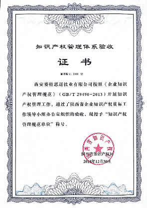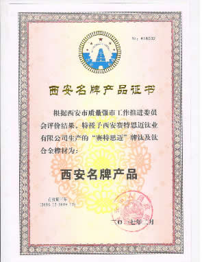 陜西省名牌產(chǎn)品:“SAITE牌鈦及鈦合金棒材”
