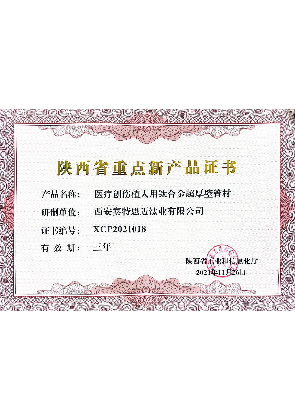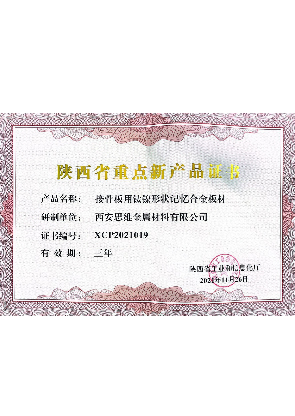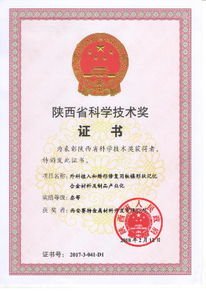 陜西省重點(diǎn)新產(chǎn)品:“外科植入用高品質(zhì)Ti-6Al-7Nb棒材”、“醫(yī)療創(chuàng)傷用鈦合金超厚壁管材”、“接骨板用鈦鎳形狀記憶合金板材”